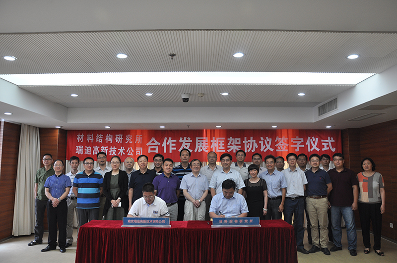 2018年7月4日,材料结构研究所与瑞迪高新技术公司在材料结构研究所会议室召开合作发展座谈会,就进一步融合科研与产业共同发展,加快提升水利部水工新材料工程技术研究中心创新水平与服务能力达成一致意见,南京水利科学研究院副院长戴济群、南京水利科学研究院原副院长、瑞迪高新技术公司董事长蔡跃波、以及科研处、财务处、瑞迪科技总公司、材结所、瑞迪高新技术公司的领导及骨干近三十人出席了签字仪式,蔡跃波董事长主持会议。