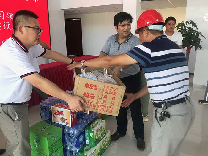 夏日炎炎,暑气逼人。近日,南科院戴济群副院长和公司领导情系一线,分赴安徽瑞和基地、江阴大桥南锚室修补加固现场,慰问高温下坚守一线的工作人员,为他们送去防暑用品,更为他们送上了一份关怀。 在安徽瑞和新材料生产基地,戴济群副院长和徐志峰董事长向战高温、斗酷暑、坚守一线的员工及参建单位,送上防暑降温用品和药品。戴院长一行还深入建设工地,检查安全生产情况,了解基地建设进度,特别叮嘱在高温下坚守岗位的一线人员,基地建设时间紧、任务重,希望大家克服高温和现场基础条件等困难,确保安全生产,抓好工程进度,保证工程质量,尽早实现项目投产。