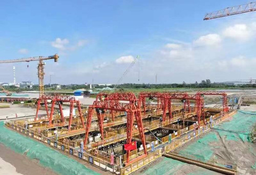 | 2021年7月21日,公司参与建设的南京仙新路过江通道跨江大桥北锚碇沉井第三次下沉精准到位,至此,项目北锚碇沉井完成全部下沉施工任务。 仙新路过江通道为主跨1760米悬索桥,一跨过江,是目前同类型桥梁中国内第一、世界第三跨度。仙新路过江通道北锚碇为陆地超大规模沉井施工,沉井尺寸达70m×50m×50m,共20个井孔,从空中看仿佛一个“大蜂窝”。沉井施工浇筑9次混凝土,分3次下沉,最终下沉至地面以下50m。沉井浇筑采用我公司新型超长保坍型HLC-IX聚羧酸系高性能减水剂,实现了高温环境混凝土2h坍落度损失小于20mm、优良的泵送性能以及初凝时间大于40h等浇筑技术要求。 北锚碇沉井下沉施工全部结束,即将转入封底作业。为保障下一阶段封底混凝土的顺利浇筑,公司将继续以优质的产品、高效的服务、及时的保供能力为工程提供强有力的支撑。