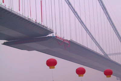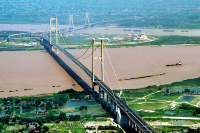 润扬长江大桥建设时是国内工程规模最大、建设标准最高、投资最大、技术最复杂、技术含量最高的现代化特大型桥梁工程,是国内第一座刚柔相济的组合型桥梁,HLC-NAF2高效泵送剂应用于该工程。其北锚碇底板厚5m,一次性浇筑1.5万方混凝土,属于大体积混凝土。采用HLC-I混凝土抗裂防渗剂配制的混凝土解决了连续超过10小时大体积混凝土泵送施工和抗裂防渗问题。